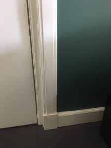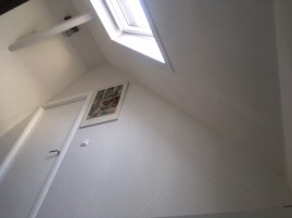 Met een oud huis houdt het klussen inderdaad niet op als je er eenmaal woont. Roger heeft plinten en architraven (omlijstingen om de deur) getimmerd. De overloop op zolder heeft een metamorfose ondergaan: van gipsplaat naar kek behang, waardoor alles meteen ook veel lichter en ruimtelijker oogt. De keuken is voorzien van een mooie, groene spatwand, waardoor het meteen veel minder steriel oogt. Muren zijn opnieuw geschilderd, het plafond heeft een tweede laag lijnolieverf gekregen – tip: doe dat alleen als alle ramen en deuren open kunnen, de geur is namelijk niet te harden! – en de balken op zolder zijn nu wit in plaats van vijftig tinten hout.