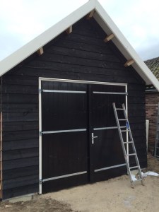 Maar wat moest er dan wel komen? En hoe groot? Maanden zijn we bezig geweest om telkens opnieuw de contouren van een garage/schuur uit te zetten. Achter op het erf of juist meer naar voren? Breder of smaller, langer of korter – de mogelijkheden zijn eindeloos als je geen knoop kunt doorhakken! Uiteindelijk besloten we voor een garage van 3.75m breed en 6.50m lang te gaan, niet achterin de tuin maar dichtbij het huis.