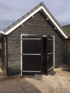 Al vanaf het begin wisten we: het kleine, groene schuurtje is slechts tijdelijk. We hadden het gekocht als bouwpakket, dat door twee man binnen twee uur tot hok zou kunnen worden gemonteerd. Het nam uiteindelijk bijna een dag, met drie man (en twee vrouwen) op een van de warmste dagen van de zomer. Bart en Max hebben er nog nachtmerries van …